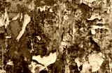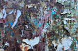 The texture of a rusty metal wall surface with paint residues and scraps from ads