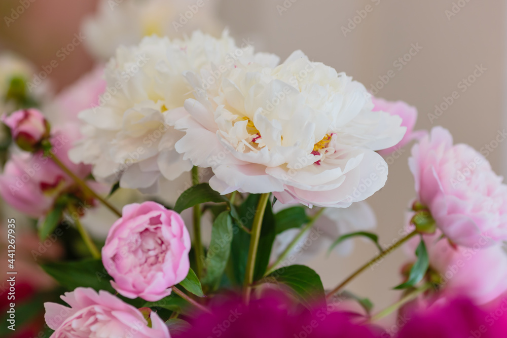 Beautiful bouquets of peonies. Flower backgrounds made of peonies.
