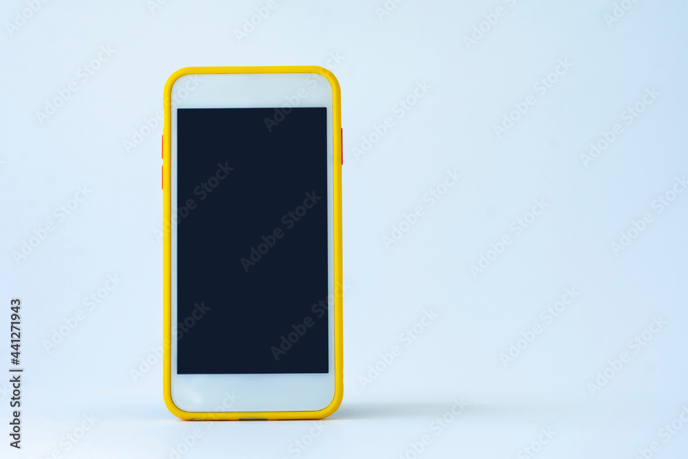 Smartphone mockup with black screen. Close-up phone on a white background.