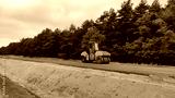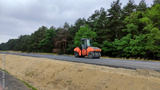 Budowa nowej drogi. Wykonanie dolnej warstwy podbudowy z kruszywa łamanego.