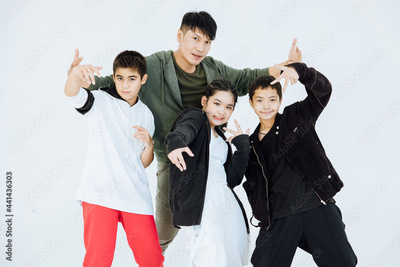 Elementary School Movement Dancer Lessons, Performance Dance Dance Classroom, Fun Group Workout Friendship in White Studio.