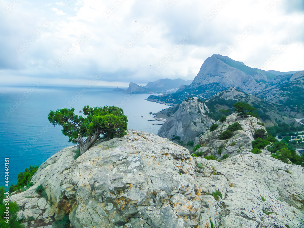 Beautiful view of the mountains and the sea. Sudak, Crimean Peninsula