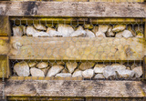 Stone wall banking stabilisation rocks at Witton Meadow Meadow, Northwich, Cheshire, UK