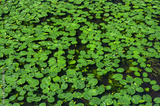 water lily on the water. lily background, texture. pond overgrown with water lilies. summer background. Top View Green Leaves Lotus or Hardy Water Lily Plant of Nymphaeaceae family