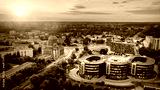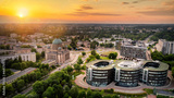 Aerial view of city of Lodz in Poland during sunset