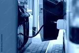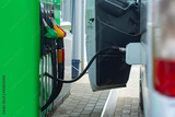 Gas station with avtomobile. The car is fueled with gasoline. Blurred photo for background.