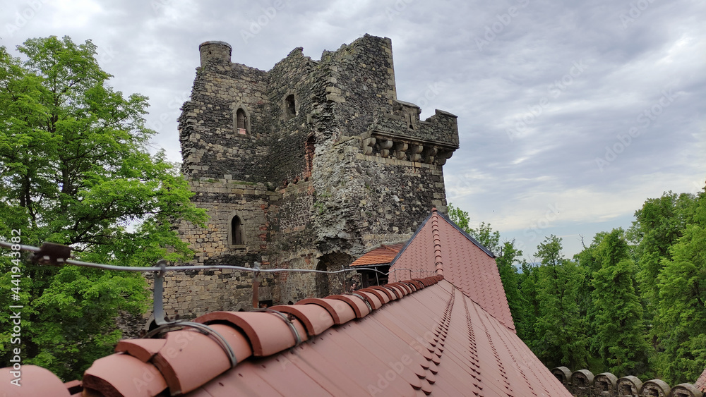 Średniowieczny zamek Grodziec z XII w. Dolnośląskie. Polska.