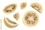 Guava fruit slices isolated on white background with clipping path and full depth of field. Top view. Flat lay