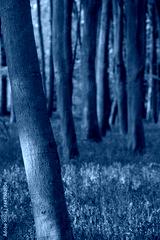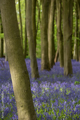 Lovely soft Spring light in bluebell woodland with vibrant colors and dense beech trees landscape