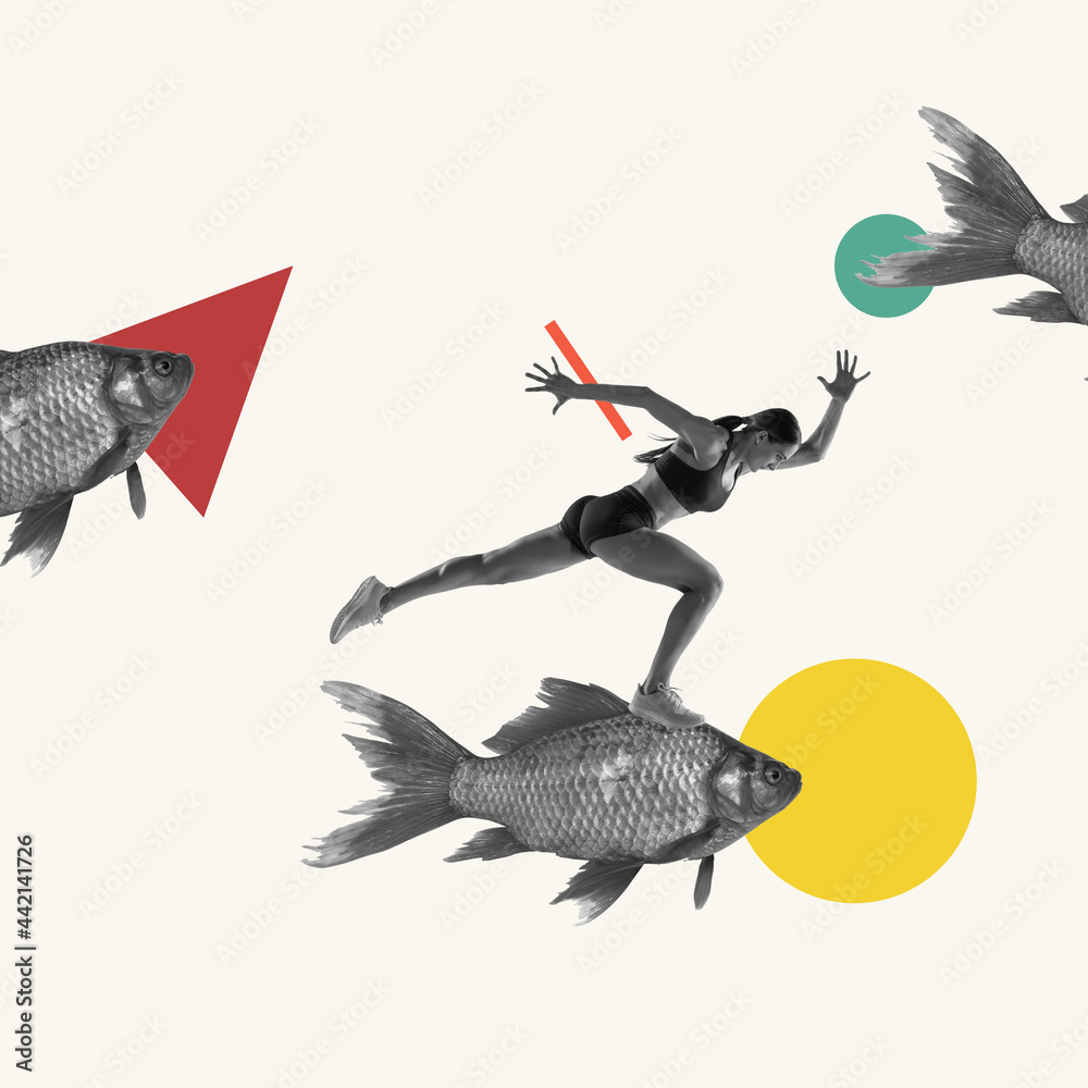 Contemporary art collage. Surrealism, minimalism in art.