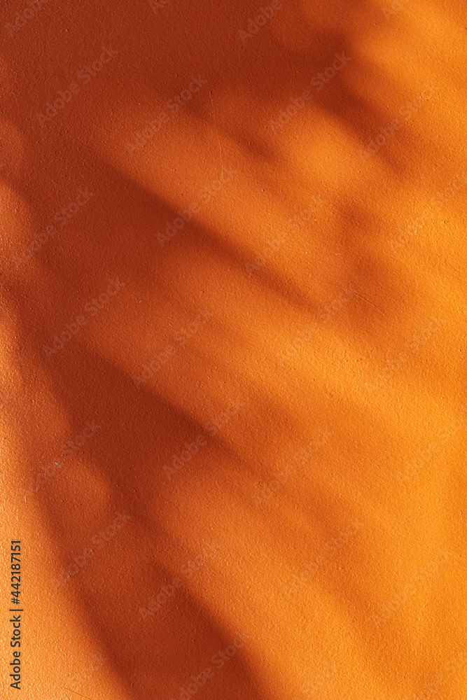 Tropical shadow on the orange wall. Minimal summer travel background