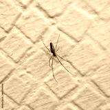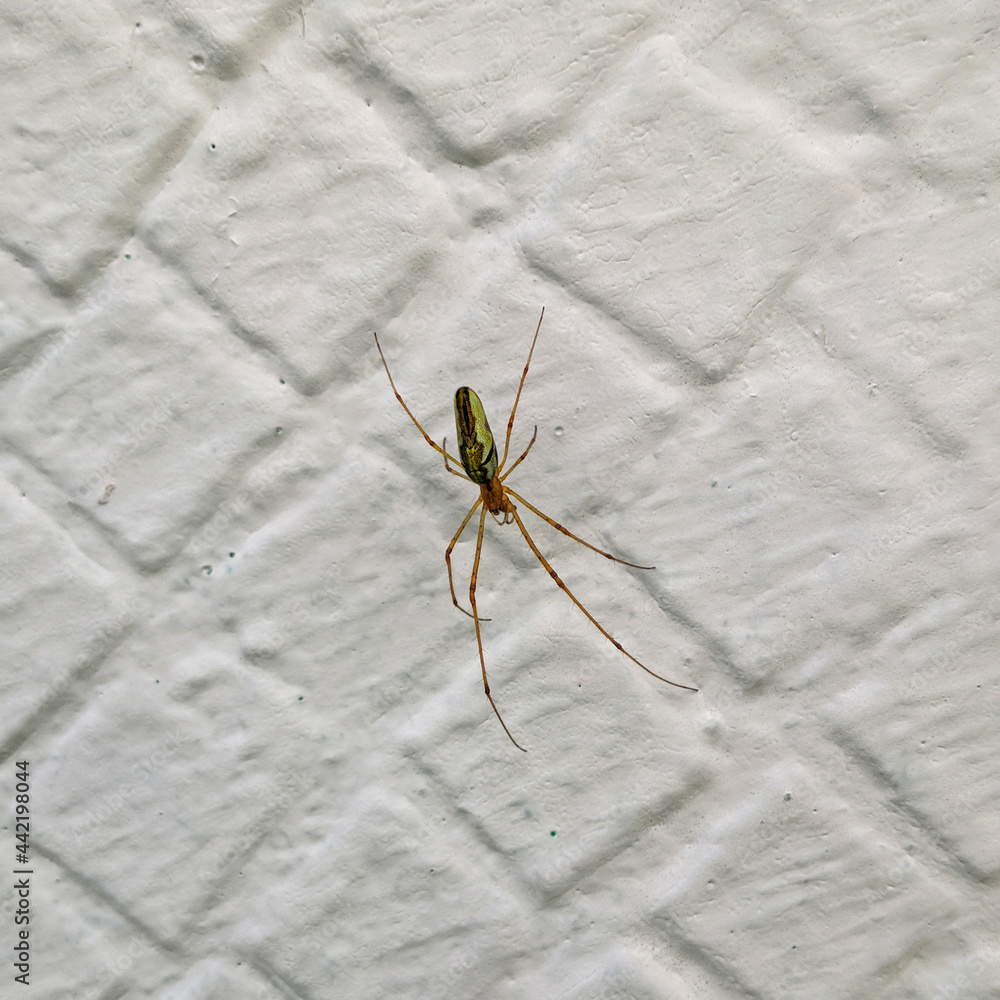 Spider on a white painted tile wall background, closeup