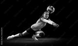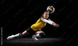 Female professional volleyball player with ball isolated on black studio background. The athlete, exercise, action, sport, healthy lifestyle, training, fitness concept.