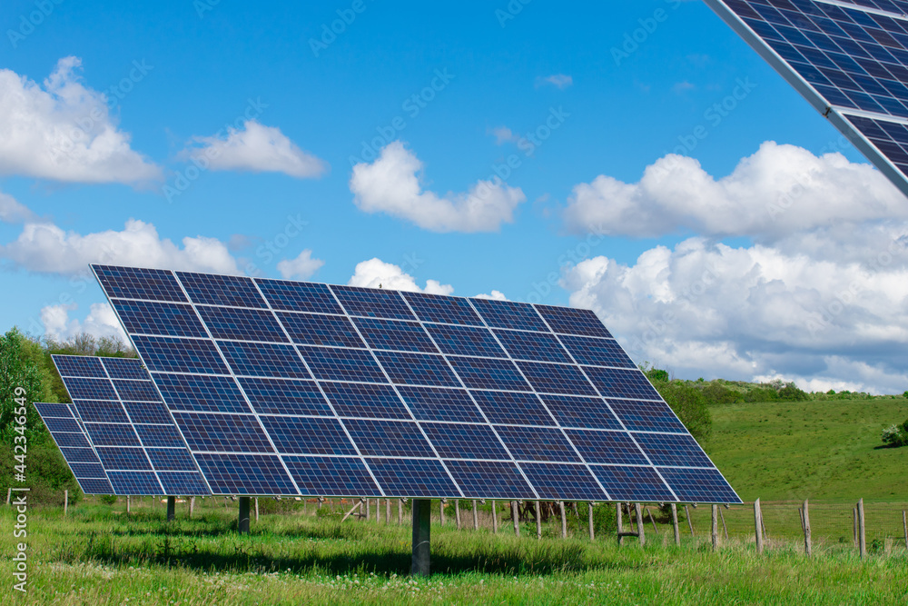 solar panel with green field