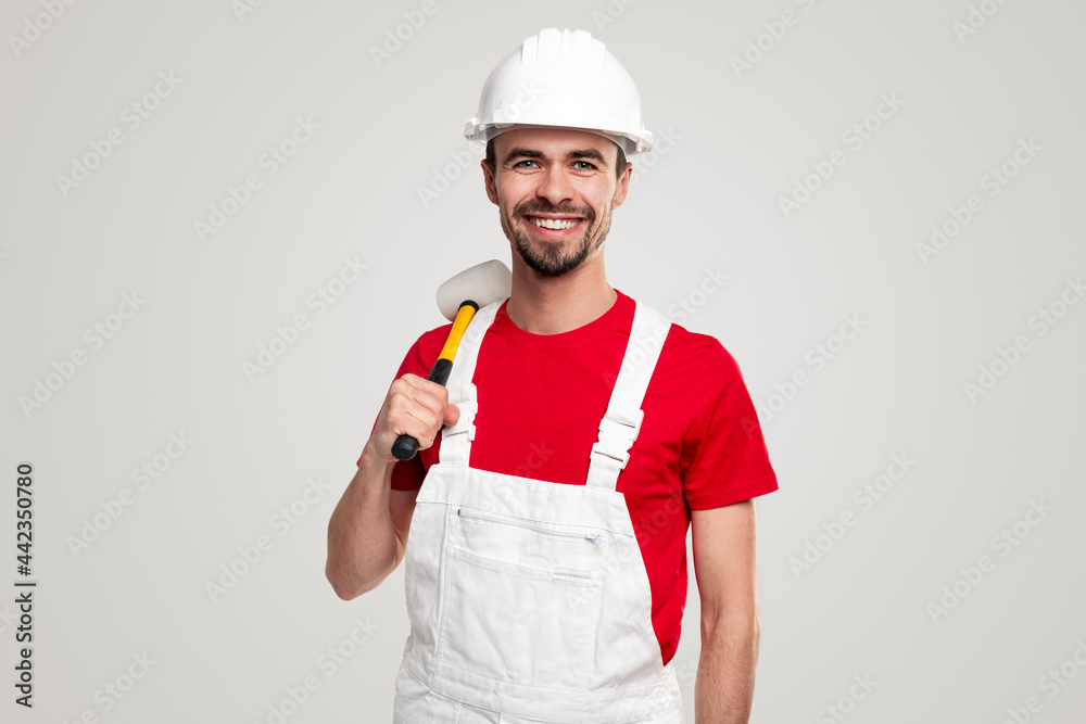 Friendly smiling worker with hammer