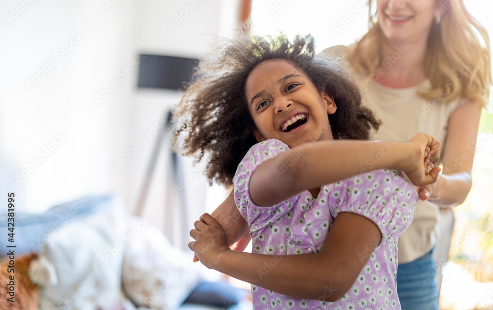 Little girl dancing with her mother at home