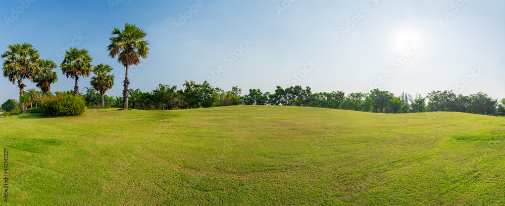 Panorama green grass on golf field