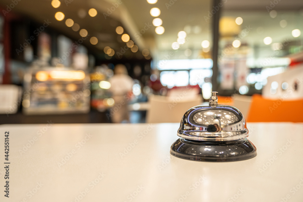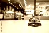 The desk cafe, restaurant with a service bell. Table reservation for dinner