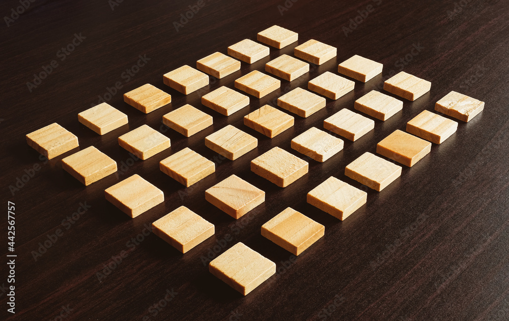 Cube Wood Square with Copy Space Isolated on a black wood table Background.