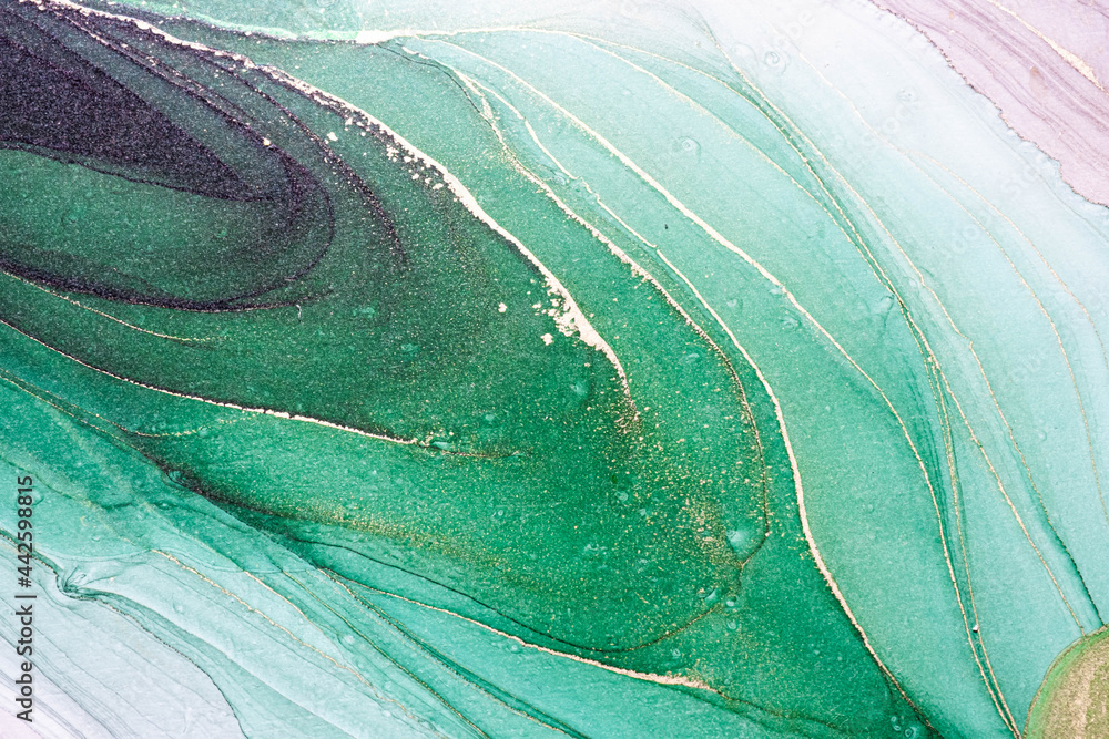 Alcohol ink, painting. Gray, black, gold, green. Abstraction. Вeautiful divorces.