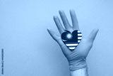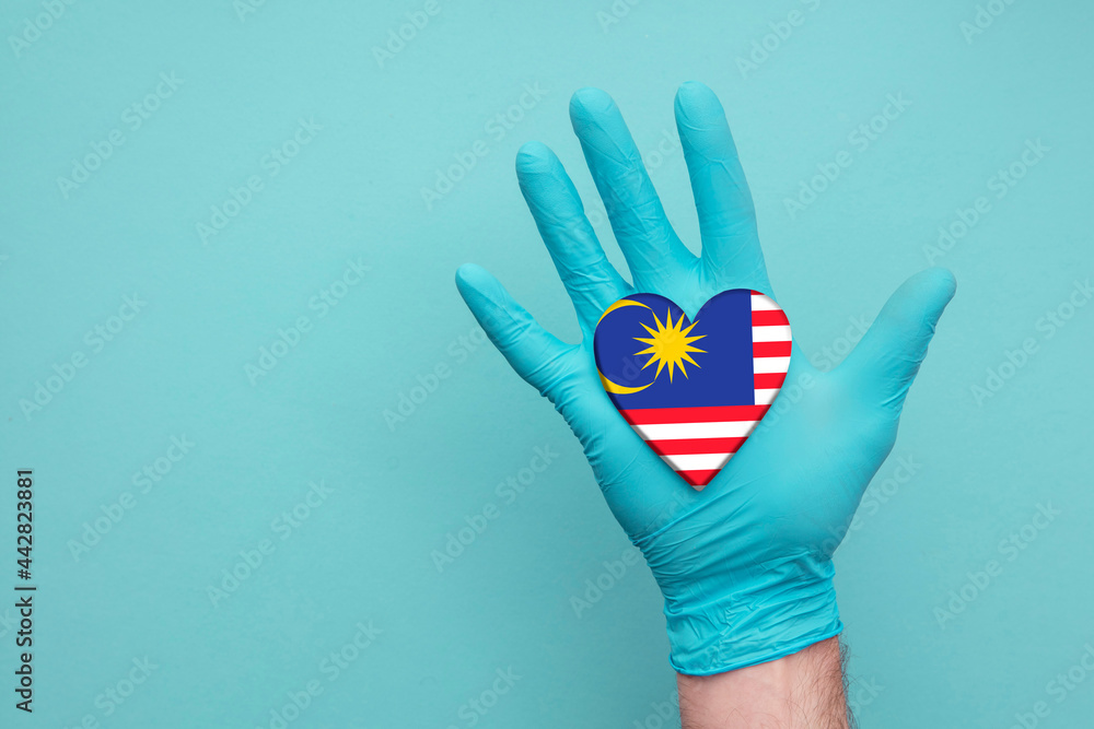 Malaysia medical health heart. Nurse hand holding country heart flag