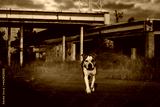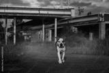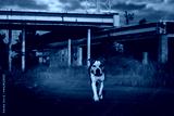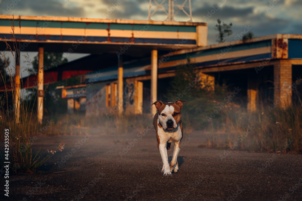 Staffordshire Terrier amstaff at an old abandoned gas station