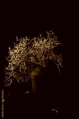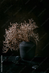 Black ceramic vase on black wooden table