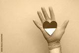 Indonesia medical health heart. Nurse hand holding country heart flag