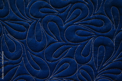 Close up texture of quilting by free-motion machine technique. on dark blue clothes Background