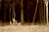Trio of whitetail deer at dusk