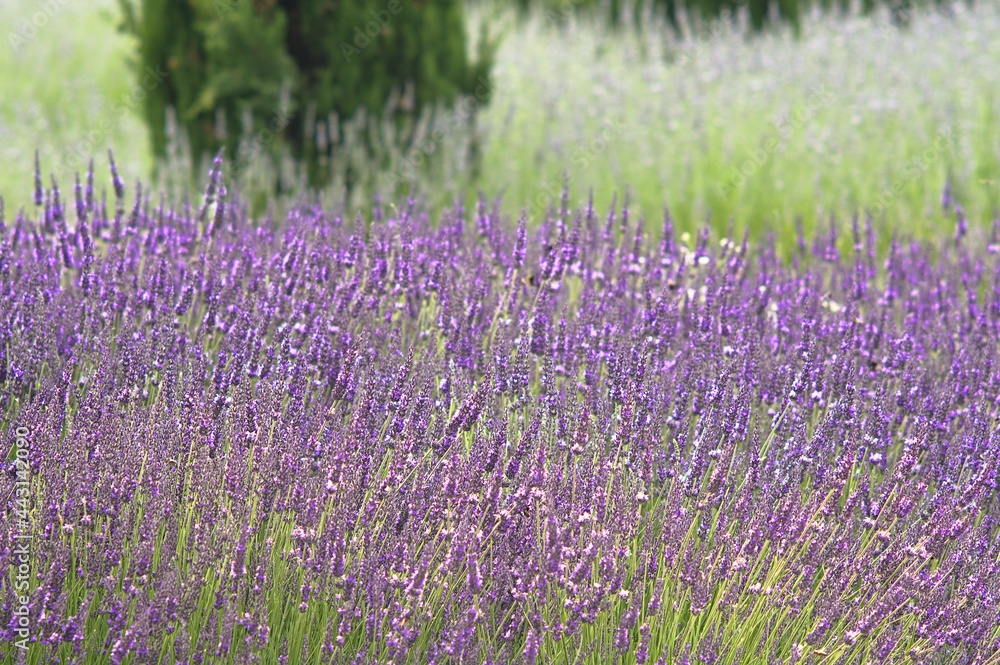 Łan lawendy. Delikatne pastelowe ujęcie i płytka głębia ostrości.