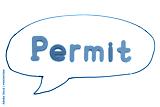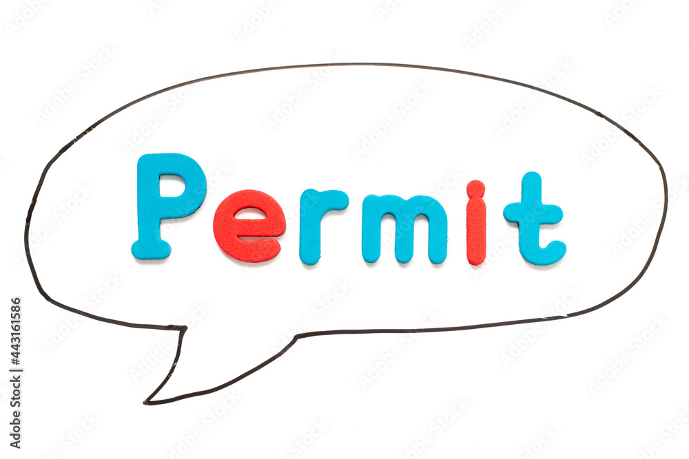 Alphabet letter with word permit in black line hand drawing as bubble speech on white board background