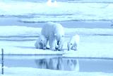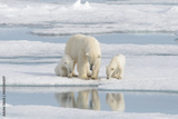 Wild polar bear (Ursus maritimus) mother and cub on the pack ice