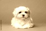 Little white puppies maltese in the studio