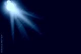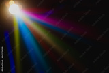 Rainbow lighting at a disco in a dark room, rays of light of different colors. Blurry background
