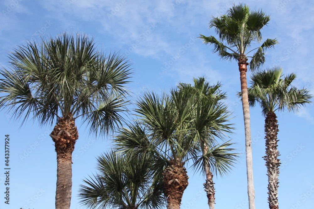 crown of the palm trees on a blue sky