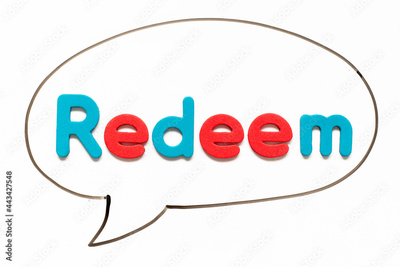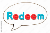 Alphabet letter with word redeem in black line hand drawing as bubble speech on white board background