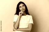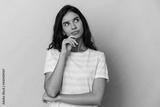 Young caucasian woman isolated on blue background relaxed thinking about something looking at a copy space.