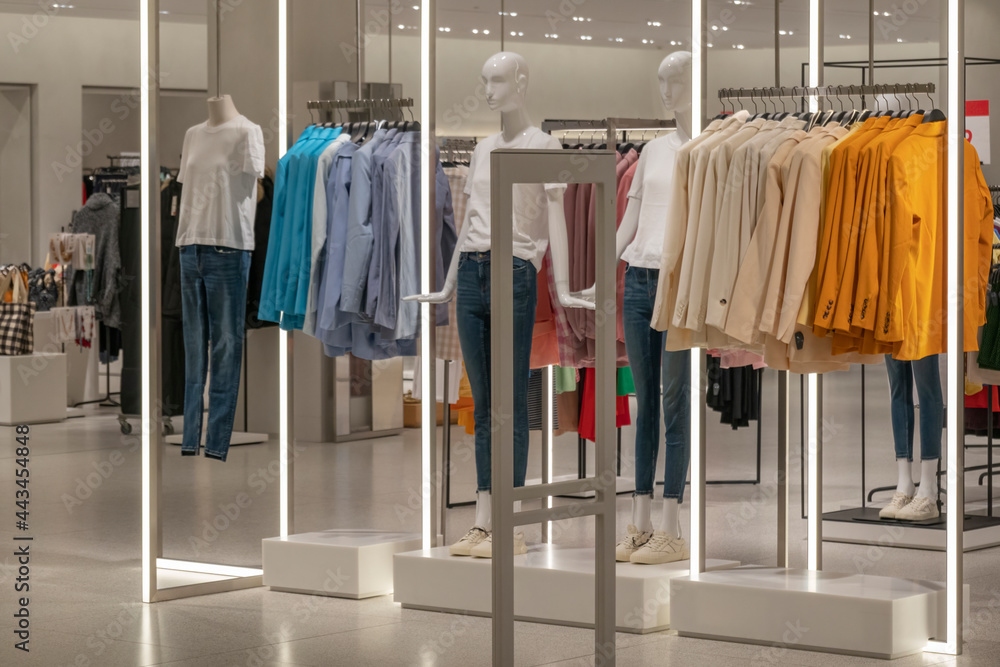 Modern fashionable brand interior of clothing store inside shopping center