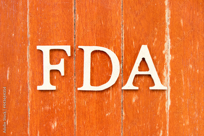 Alphabet letter in word FDA (abbreviation of food and drug administration) on old red color wood plate background