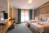 Interior of a double bed hotel bedroom in luxury hotel
