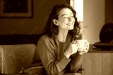 Beautiful woman relaxing and drinking hot tea