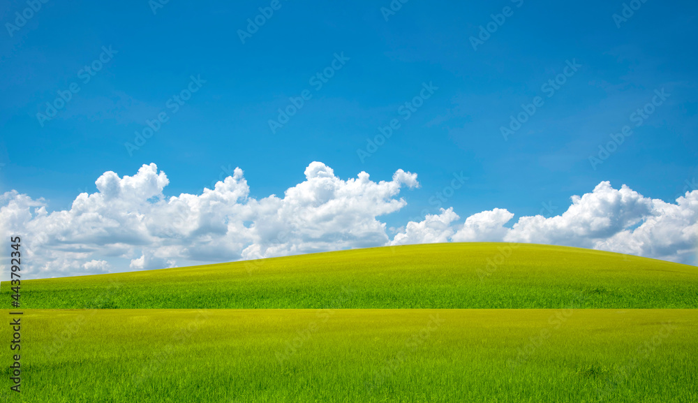 Rice field blue sky with clouds