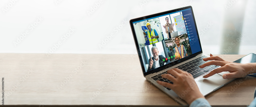 Video call group of business people meeting on virtual workplace or remote office.Remote work,virtual meeting and Online Video Conference Interview Call concept.Manager talking online with coworkers