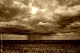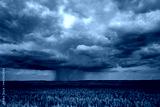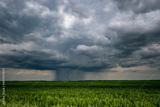landscape with dark sky with rain clouds before storm. thunderstorm front