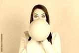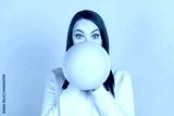 Photo portrait girl inflating purple air balloon preparing to party isolated pastel pink color background