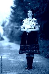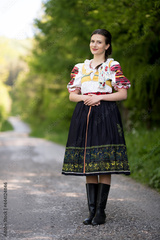 Belle jeune femme slovaque en costume traditionnel. folklore slovaque