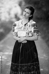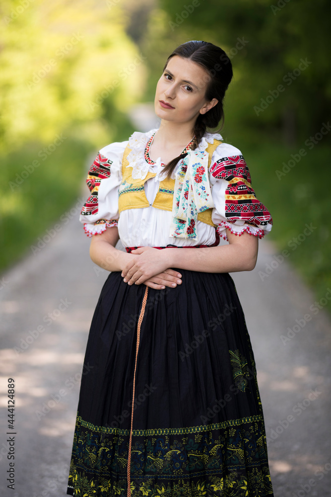 Belle jeune femme slovaque en costume traditionnel. folklore slovaque