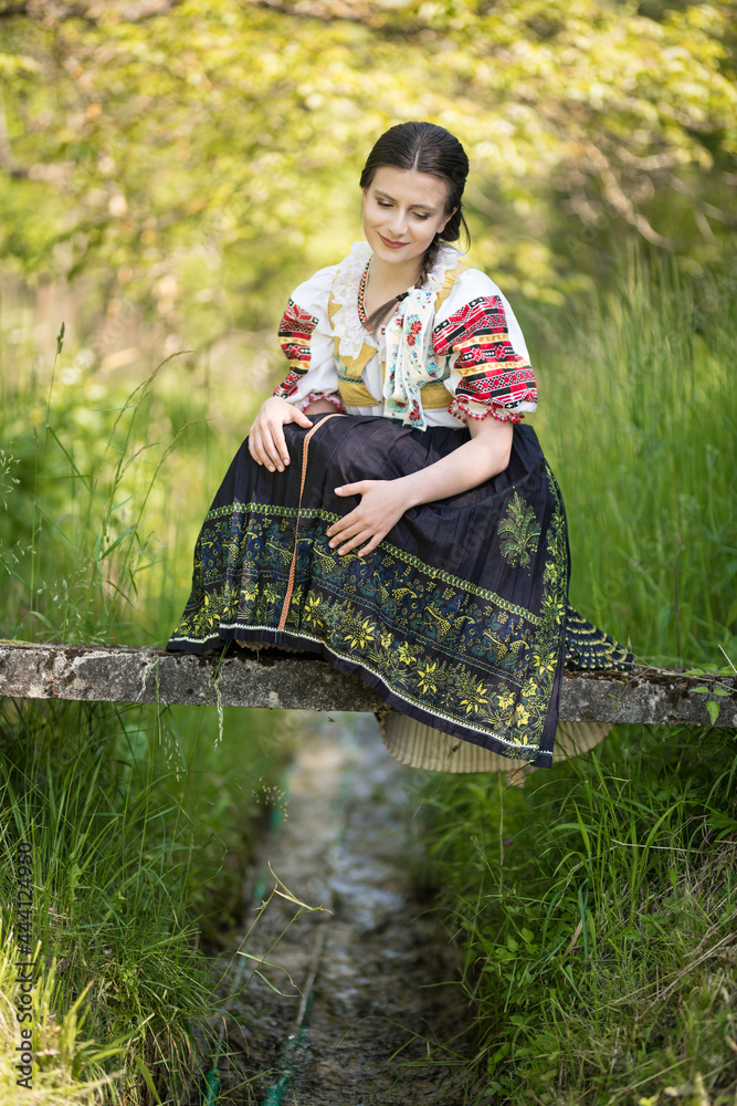 Belle jeune femme slovaque en costume traditionnel. folklore slovaque