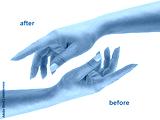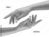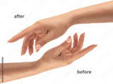 Beautiful Woman Hands. Female Hands before and after Applying Cream, Lotion. Spa and Manicure concept. Female hands with french manicure. Soft skin, skincare concept. Hand Skin Care.